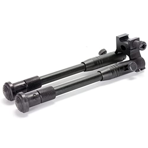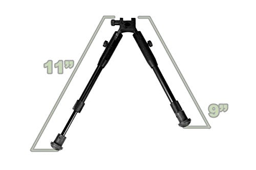 Details: A durable, lightweight, and strong aluminum constructed Bipod with extendable spring powered legs with a rail accessory system base for attaching onto platforms with RIS rails. Features a comfortable rubber stand and unique position-lock feature prevent it from tipping. Comes with rubberized stand and thumb screws. No tools required to install. Legs are easily extendable and retractable by twisting the knobs located on them. It can be easily foldable for storage and portability.