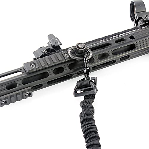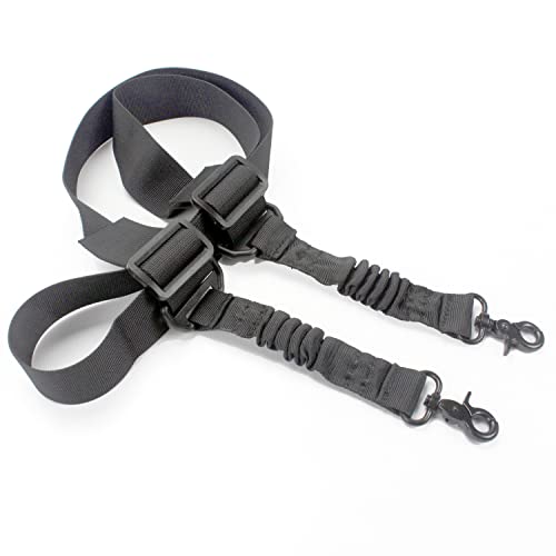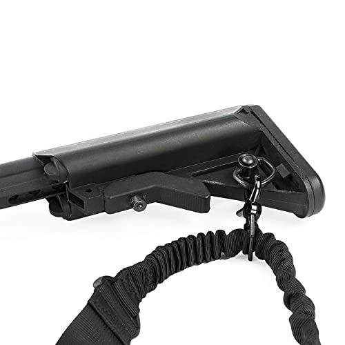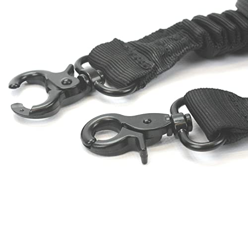 Details: Our best choice for users looking for great mobility and weight management to give you the tactical advantage you could ask for. Made out of a heavy duty nylon strap tested to support 250 lbs of weight, the sling is fully adjustable with different mount options and easy release clasps. The full steel clip is compatible with a variety of sling points found on various rifle manufacturer. You simply need to mash the clip's tabs open to allow its jaw to secure onto a point and your done. No need to fumble over buttons, pull rings or pins. Included is a nylon shroud to insulate the steel clips from excessive wear and sound. Included as well is a nylon stock adapter that you simply wrap around a rifle's butt stock if no sling points are available. The sling can simply adjusted to wearer's comfort via an adjustment loop, while quick release clasps found at the weapon's sling point to allow the user to drop their weapon at moment's notice, or if needed to detach the sling from the user via the 2nd quick release clasp found on the sling itself. A feature filled option for those looking for the mobility and freedom of one point slings. By carrying a weapon from a point (usually at the rear of the weapon) this allows the shooter to go from hands free to attacking position without obstruction. It keeps the weapon securely attached the user, with only a single vector point of hold to allow the user to fire in all directions. If for whatever reasons you need to let go of the weapon to become hands free, simply do so and it will simply fall to a hanging position. To engage simply grab the weapon without ever needing to perform any other movement. While not recommend for users that need to sling their weapon across long distances, this is great for shorter and intense sessions that requires a continuous engagement.