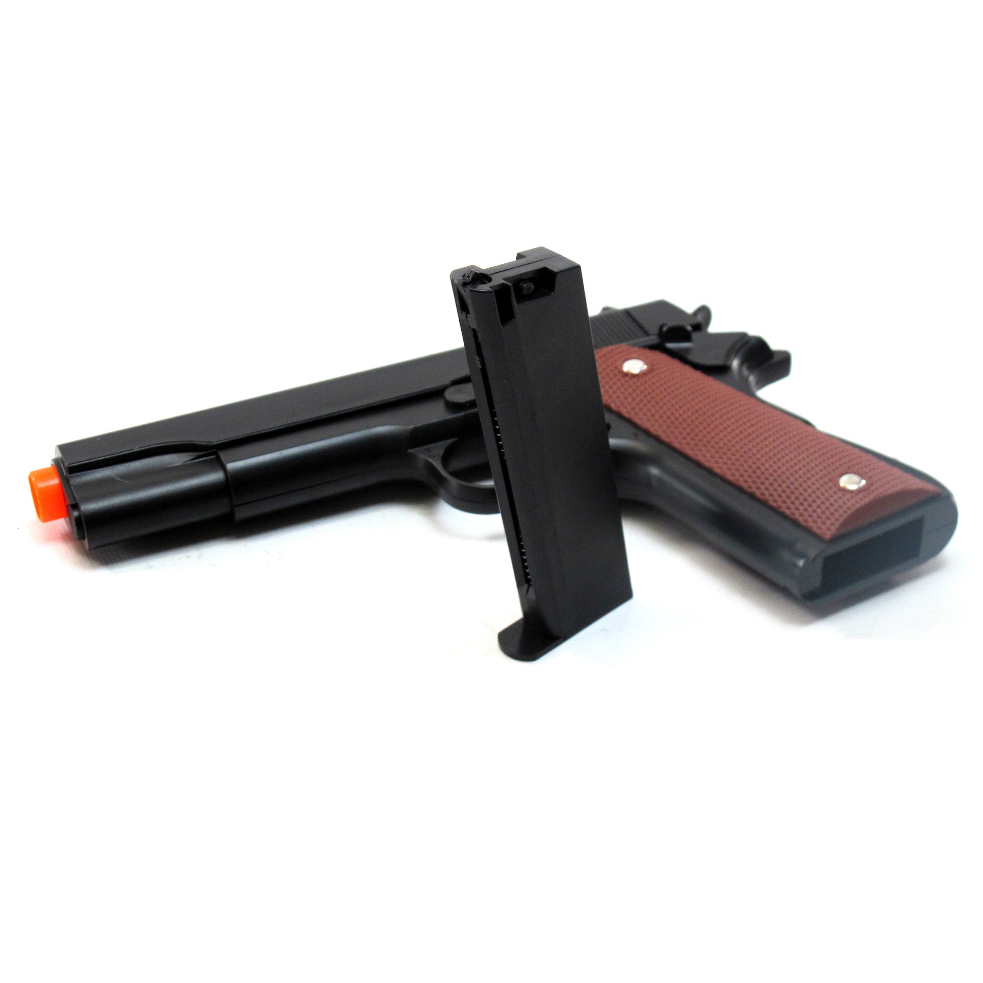 BBTac 1911 Airsoft Pistol Handgun Replica Spring Loaded with Realistic Working Hammer, Saftey grip and Magazine (Wood)