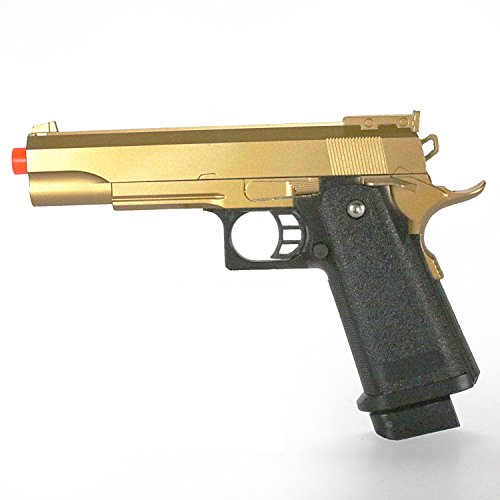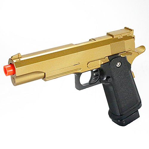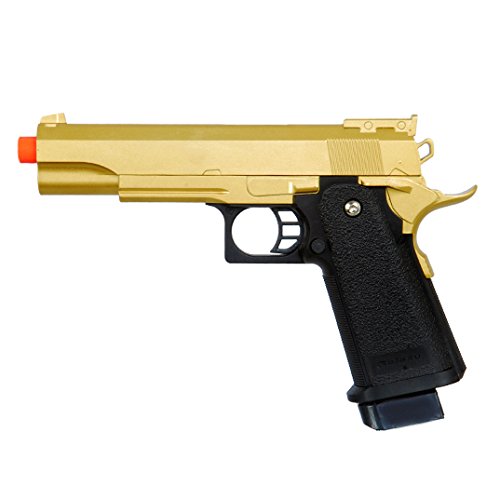bbtac airsoft pistol bt-g1911 golden 1911 airsoft spring powered pistol gun, zinc alloy construction, aim sights, 300+ fps, with bbtac warranty & tech support(Airsoft Gun)