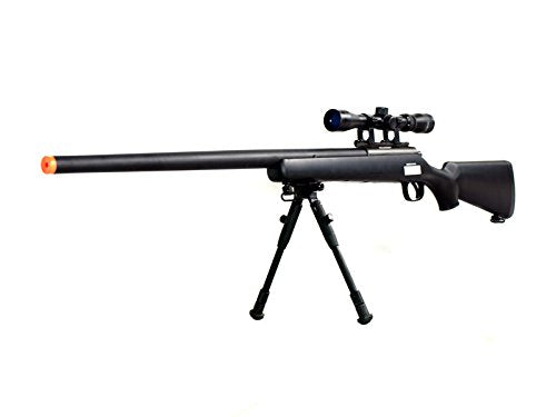 Details: Introducing the BBTAC VSR-10 Sniper Rifle, with 3x Hunting Scope and Metal Extendable BipodSpecifications: Operation: Bolt Action Build: Aluminum Outer Barrel, Bolt ABS Plastic Stock Firing Modes: Single Shot, w/ Functional Safety Muzzle Velocity: 400 FPS (w/ 0.20g BBs approx) Magazine: 30 rounds Weight: 5.3 lbs Overall Length: 45.5 inch Package Included: airsoft rifle, magazine, Scope and BipodAmmo type: Seamless 0.20g or heavier (0.23g, 0.25g, 0.26g, 0.28g, etc) BBs. For maximum performance and accuracy, we recommends MetalTac .20g .25g .30g BBs which carry perfect spherical consistency and density, available on Amazon, please search for "MetalTac BB"