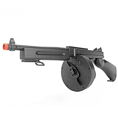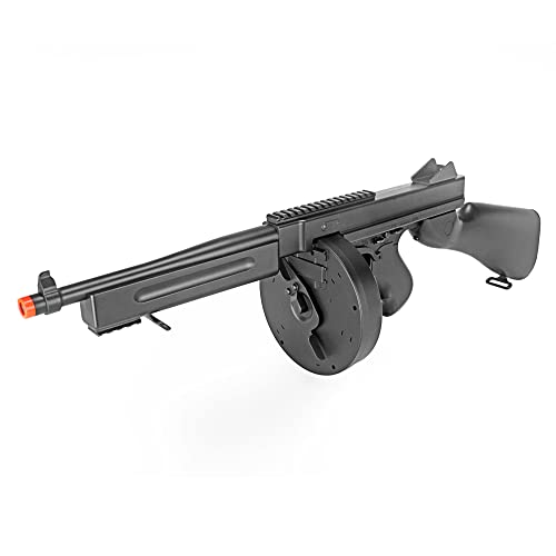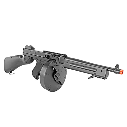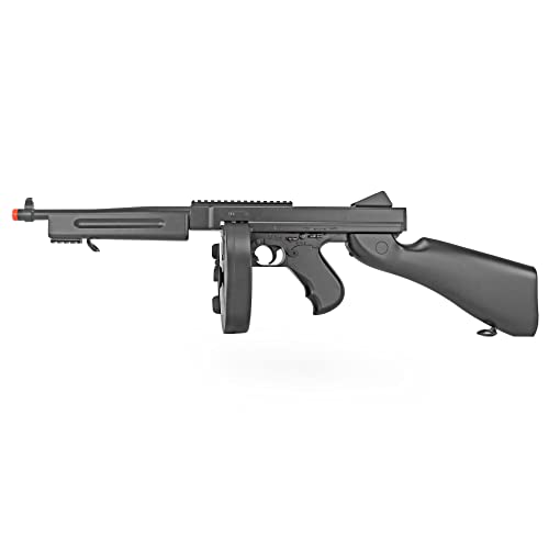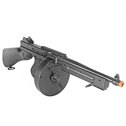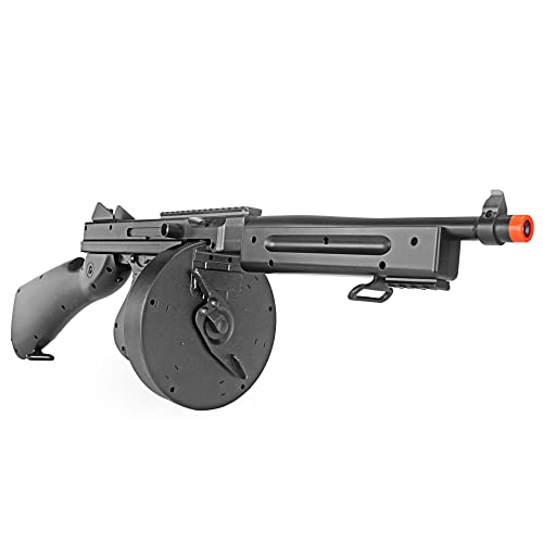 BBTac Airsoft Tommy Gun M1A1 Sub-Machine Gun Chicago Full Auto Electric SMG AEG with Drum, Battery & Charger